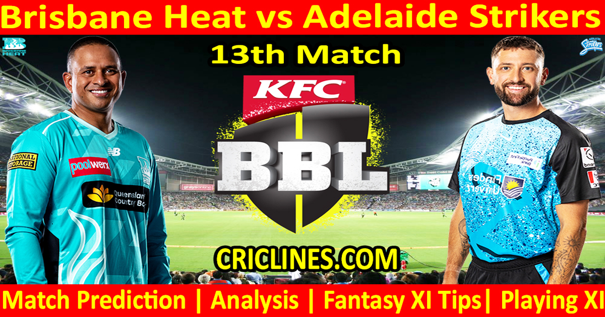 Gli appassionati di cricket sono pronti ad assistere all’ennesima grande battaglia di BBL T20. La 13a partita della Big Bash League 2025-26 si giocherà tra Brisbane Heat e Adelaide Strikers il Sabato 27 dicembre 2025 al Gabba, Brisbane. Stiamo pubblicando in modo sicuro, accurato e protetto pronostico della partita di oggi di BBL T20 gratis.